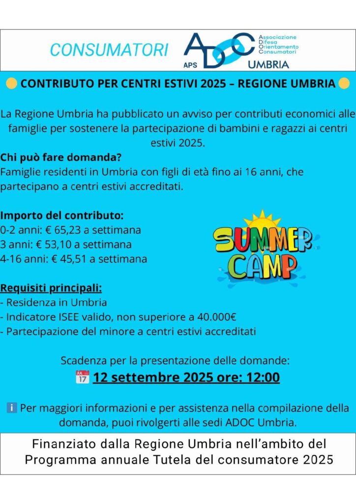 CONTRIBUTO PER CENTRI ESTIVI 2025 – REGIONE UMBRIA